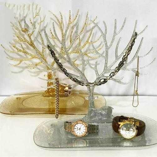 دارای کفی (استند) برای نگهداری لوازم بزرگتر مانع از گره خوردن احتمالی زیورآلات به یکدیگر مناسب برای چیدمان اتاق عروس |