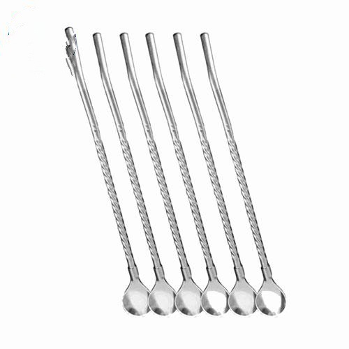 قاشق نی دار 6 عددی مارپیچ نقره ای