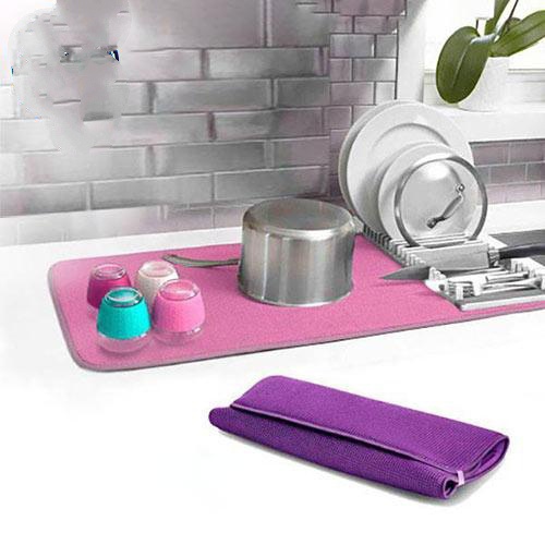 طراحی نوین ، زیبا و کاربردی دارای پد پارچه ای با قابلیت جذب آب همراه با استند تولید شده از جنس پلاستیک مقاوم و با کیفیت دارای استند با رنگ سفید و پد با رنگ های طوسی و کرم (ارسال رنگ به صورت رندوم) قابلیت تا شدن پد بر روی استند جهت کاهش حجم اتصال و جداسازی آسان پد از استند سبک با قابلیت جابه جایی آسان مناسب جهت استفاده در کنار سینک ، روی کابینت و … قابل استفاده در آشپزخانه ، کمپینگ ، مسافرت و … |